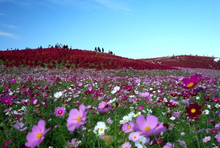 柳蘭以鮮紅的色調聞名,32,000 株美麗的柳蘭將國立常陸海濱公園的花圃暈染得分外迷人,營造出了鮮明的秋日意境。