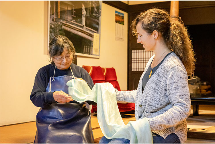 其中一種特別著名的技法是日式藍染。許多地方都提供相關體驗,即使用這一技法親手為單調的手帕或 T 恤染上令人驚艷的藍色,進而將其變成一件小藝術品。