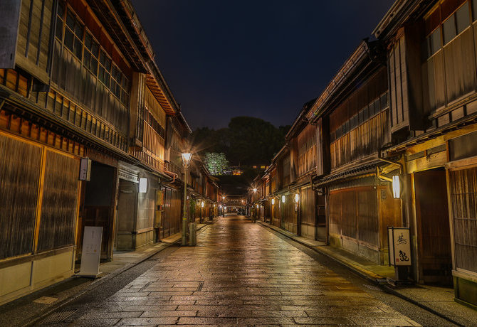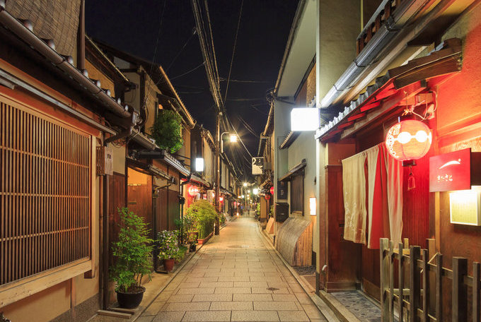 在五大花街或藝伎區中,祇園是其中兩個的所在地。在觀賞完祇園角的表演后,到昏暗的街道上散步,或許您還能幸運地看見藝伎或舞伎趕赴當晚預約演出的情景。