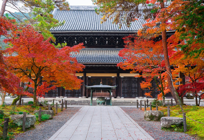 南禪寺曾是日本最重要的禪寺之一。巨大的木造三門是為了紀念在 1626 年大阪城圍城中犧牲的亡者,而這場戰役也確立了武將豐臣秀吉繼任掌權。南禪寺較小的分寺天授庵也值得一游。何不選一家知名的湯豆腐(即豆腐火鍋)餐廳享用午餐?