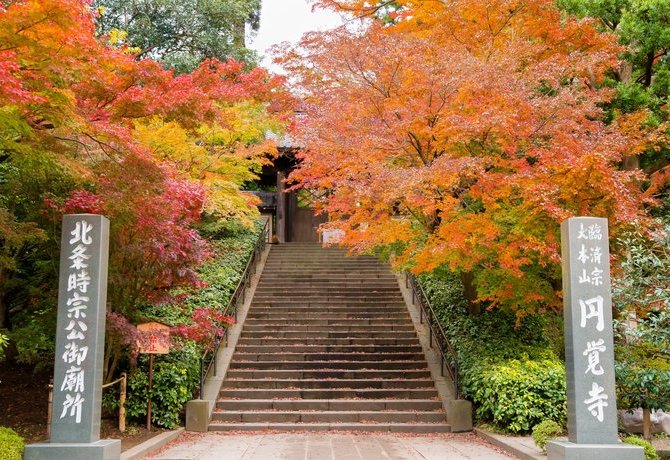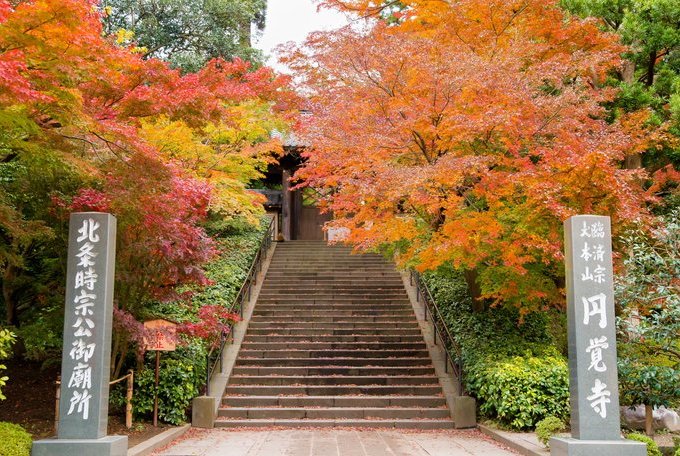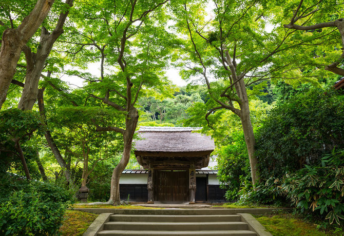 探索列為國家歷史遺跡的禪寺——圓覺寺。欣賞曾出現在日本文學作品中的三門,據說從底下通過就能獲得頓悟。