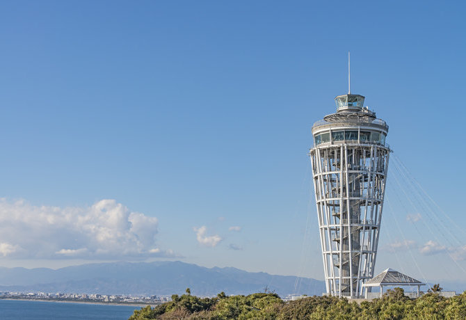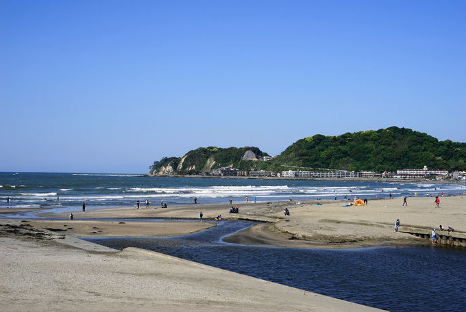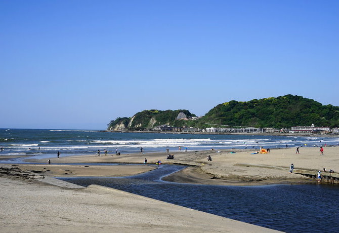 在由比濱的沙灘上結束一天的行程。這里不僅夕陽很美,天氣晴朗時,還能看到富士山。此地全年都很適合游覽。不過,若您在夏天光臨,您還可以去由比濱觀看煙火表演。