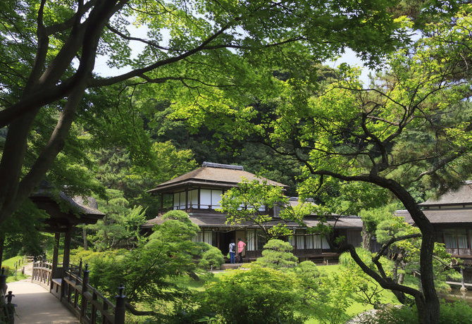 在這座寬闊的庭園里漫步,欣賞日式建筑