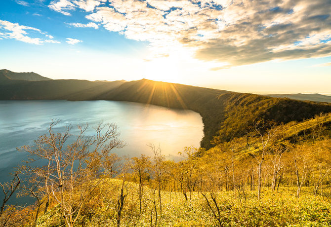 摩周湖是因摩周山噴發而形成的。這座清澈的湖泊全年的水位維持不變,有時煙霧繚繞。在摩周湖通往山頂的步道上選擇任一制高點,欣賞湖區神秘的景色。實際上,能夠看清湖面的次數少之又少。