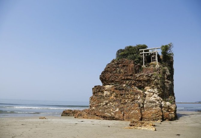 位于濱海巖頂的日御碕神社,是專門供奉天照大神與龍神的神社。本神社擁有超過千年的歷史,現存的結構呈現出江戶時代的風格,包括朱紅色拱柱在內。