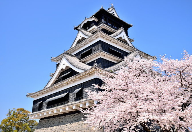 熊本市是宏偉的熊本城所在地。盡管熊本城在 2016 年的熊本地震中受損,但這座黑色的城堡依然是熊本市莊嚴雄偉的象征。城堡周圍有 800 多棵櫻花樹,是絕佳的賞櫻地點。
