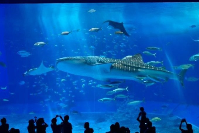 沖繩美麗海水族館坐落在國營沖繩紀念公園內,有 大約 680 種的約 10,000 條魚。在巨大的主水族箱里,您可以欣賞到鯨鯊、蝠鲼以及數不盡的其它魚類。水族館的營業時間是上午 8 點 30 分到下午 6 點 30 分。請務必預留出幾個小時,以便觀賞完整座水族館。