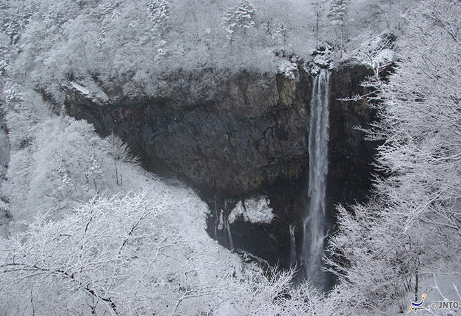 湖的北邊坐落著中禪寺溫泉。您可以在這里找到日光最知名的瀑布——華嚴瀑布,也是日本三大名瀑之一。搭乘電梯往下 100 米,就能到達瀑布底部,欣賞最美的景色。到了冬天,當瀑布的泉水凍結成冰,景色更是格外壯觀。