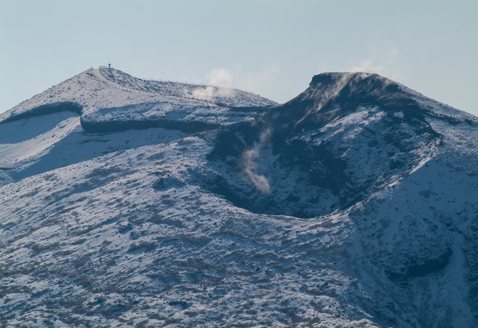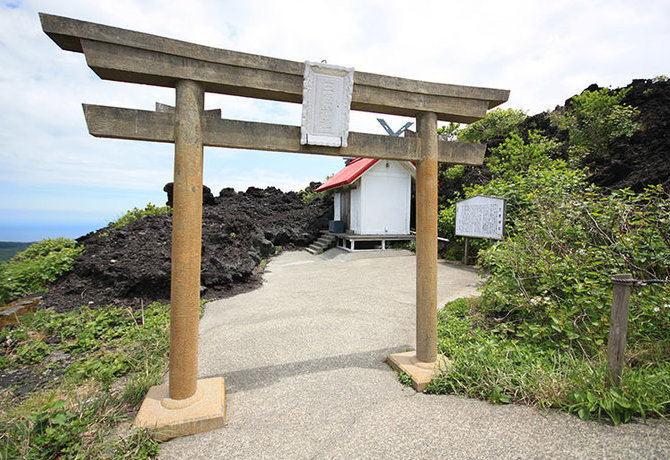 登上這座自 1986 年的大噴發后就一直沉寂的火山。接近山頂時,您會經過被奉為圣地的三原神社。