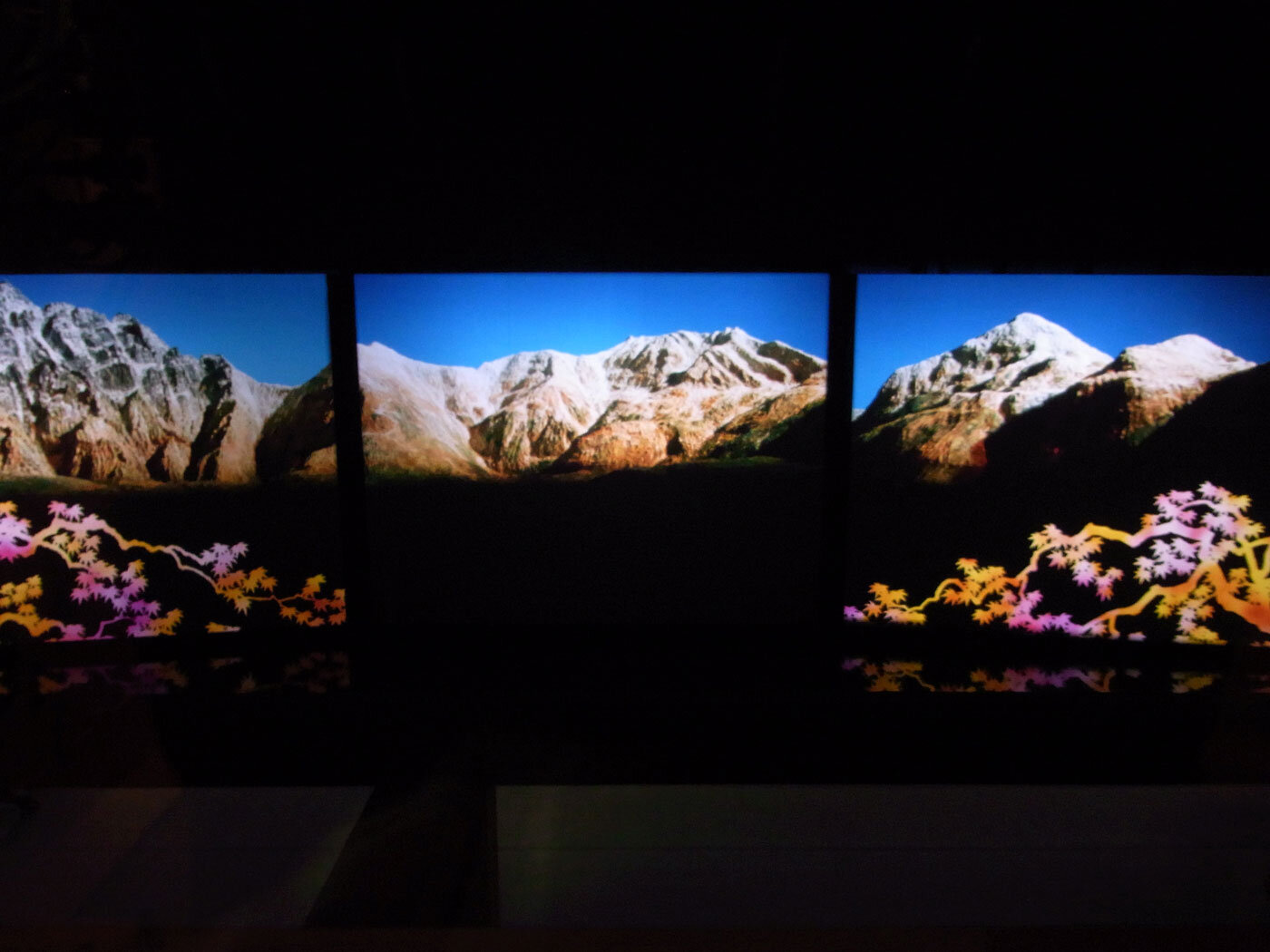 影院主要播映兩部影片:《新立山曼荼羅圖》和《立山1990》。前者以通俗易懂的方式深入淺出地介紹立山信仰,后者則主要展示立山的自然風光。日語中的“曼荼羅”,指幫助人們形象化地理解并感受佛教包羅萬象的宇宙觀的圖繪。